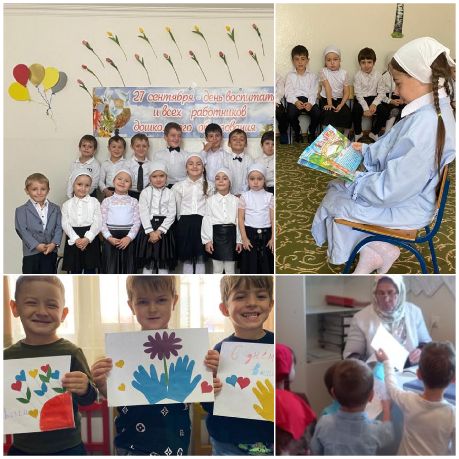 27.09.2022В нашем детском саду всех сотрудников с профессиональным праздником поздравила заведующая Межидова Б.Б.. Ребята старшей группы «Зайчата» подготовили утренник ко дню дошкольного работника. Этот праздник создал радостное, приподнятое настроение у ребятишек и персонала заведения. Прозвучали красивые поздравления воспитателям. Также мы обобщили знания ребят о самом празднике, о многообразии профессий людей, работающих в детских дошкольных учреждениях, донести до их сознания значение труда всех.