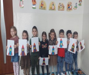 Для ребят старшей группы «Зайчата» подготовили занятие «День Космонавтики». После познавательной беседы, дети разгадывали загадки на космическую тему, с удовольствием провели физическую тренировку, которая необходима для будущих космонавтов. Для детей проведена игра «Полет в космос». Ребятами была сделана аппликация из цветного картона «Космическая ракета».